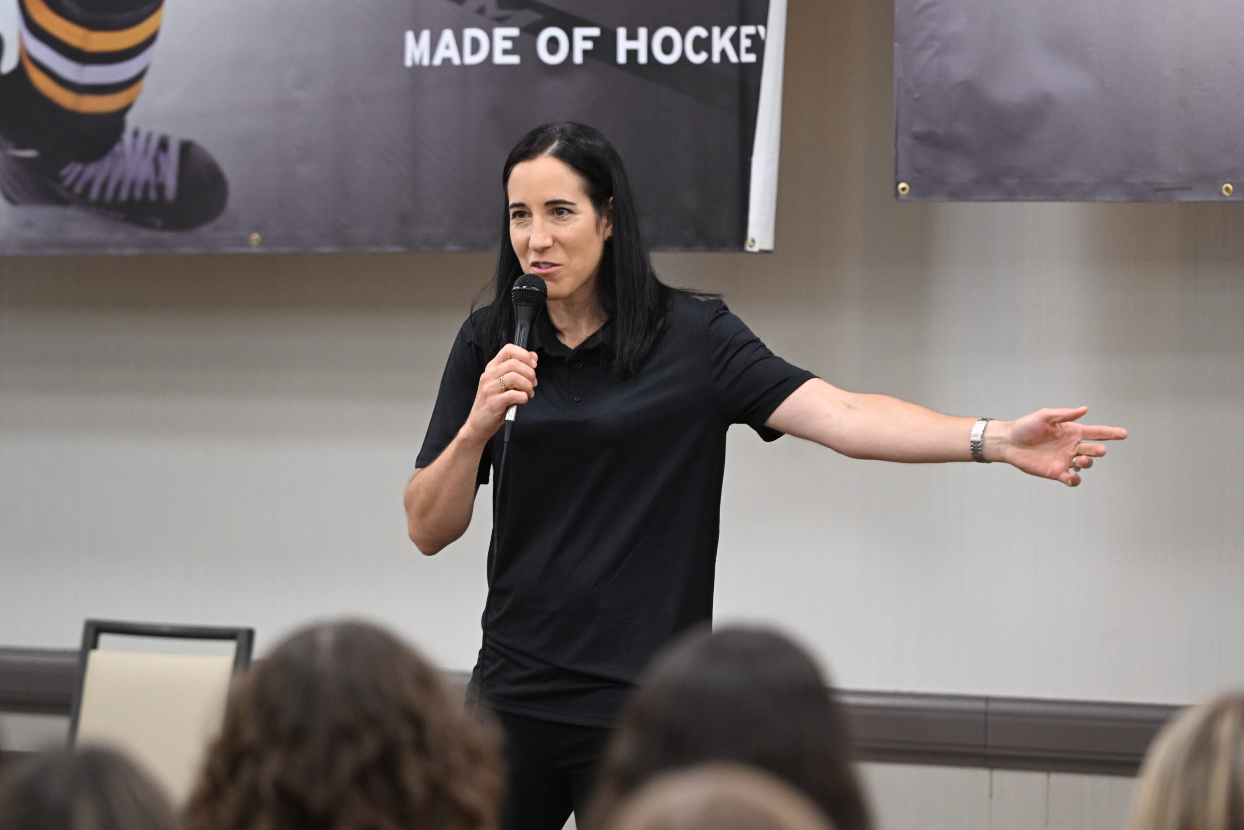 The festivities commenced with Media Night at the Renaissance Hotel on Thursday. Media Night started with the CCM 68 Girls. The event was a vibrant tapestry of stories and inspiration, headlined by the esteemed Caroline Ouellette. A true icon of Canadian women’s hockey, Ouellette graced the stage with her accomplishments echoing her journey. She narrated her remarkable story of her challenges of playing hockey as a young girl, Olympic triumphs, gold medals, and relentless pursuit of excellence. Ouellette’s unwavering dedication resonated with the young players, underlining the path they could carve for themselves.