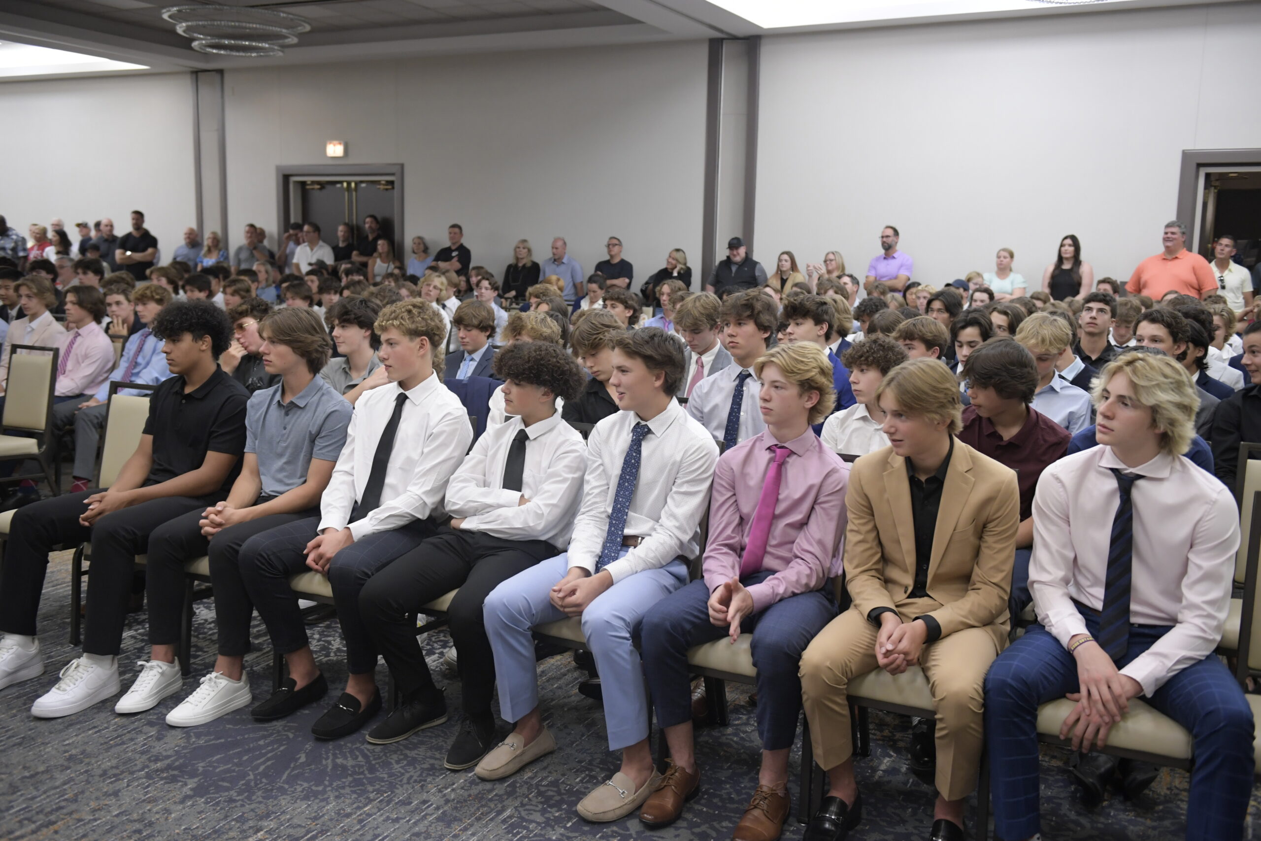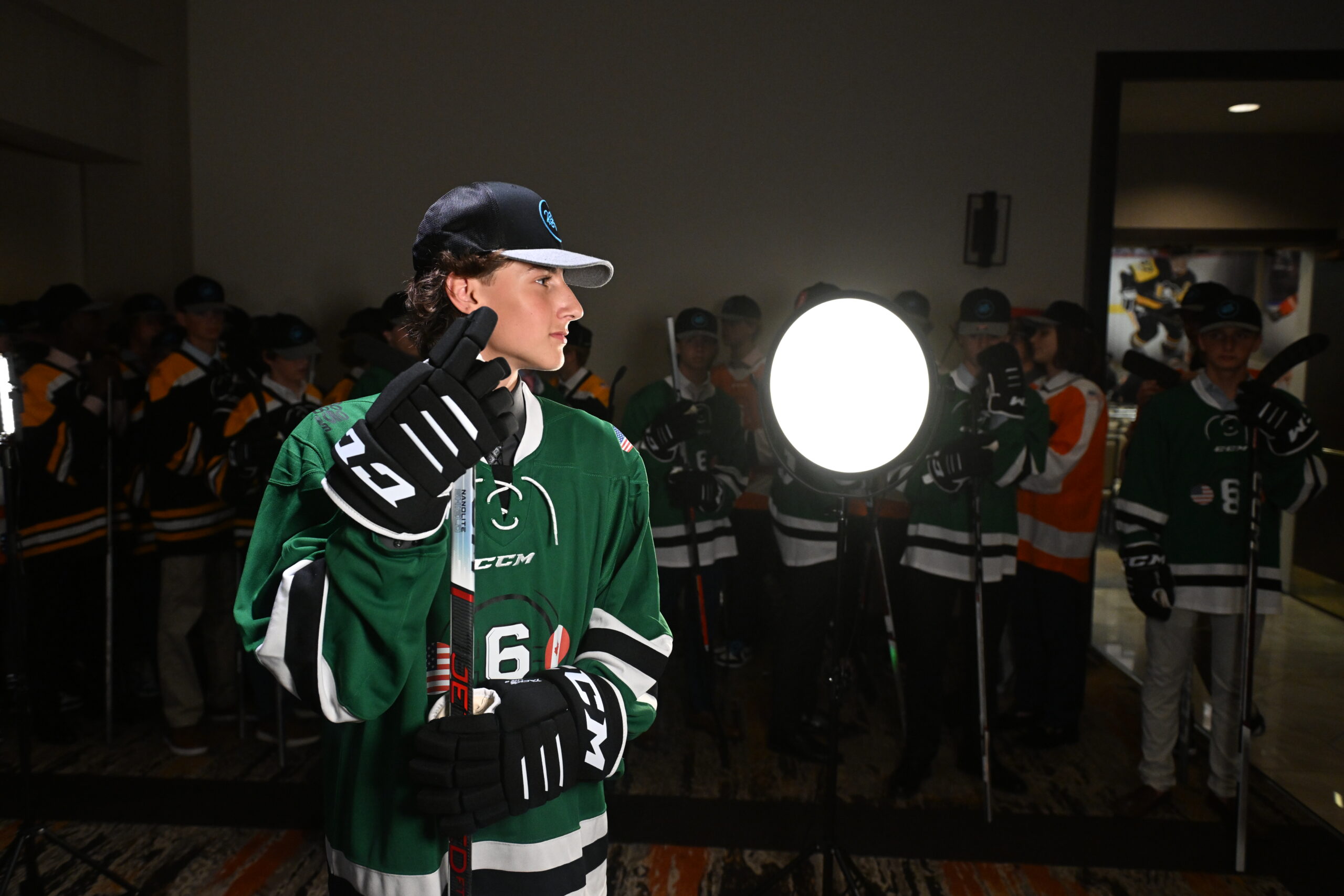 After recceiving all their CCM gear and taking team and individual photos, the girls began to clear out as the CCM 68 boys began to arrive. Dale Williams, the Global Sports Marketing Manager at CCM Hockey, welcomed Seth Jones of the Chicago Blackhawks as the surprise guest speaker for the CCM 68 Boys Media Night. As Jones completed his Q&A, the boys were released to gather their new CCM gear to take their photos and start setting their minds towards to rest of the weekend.