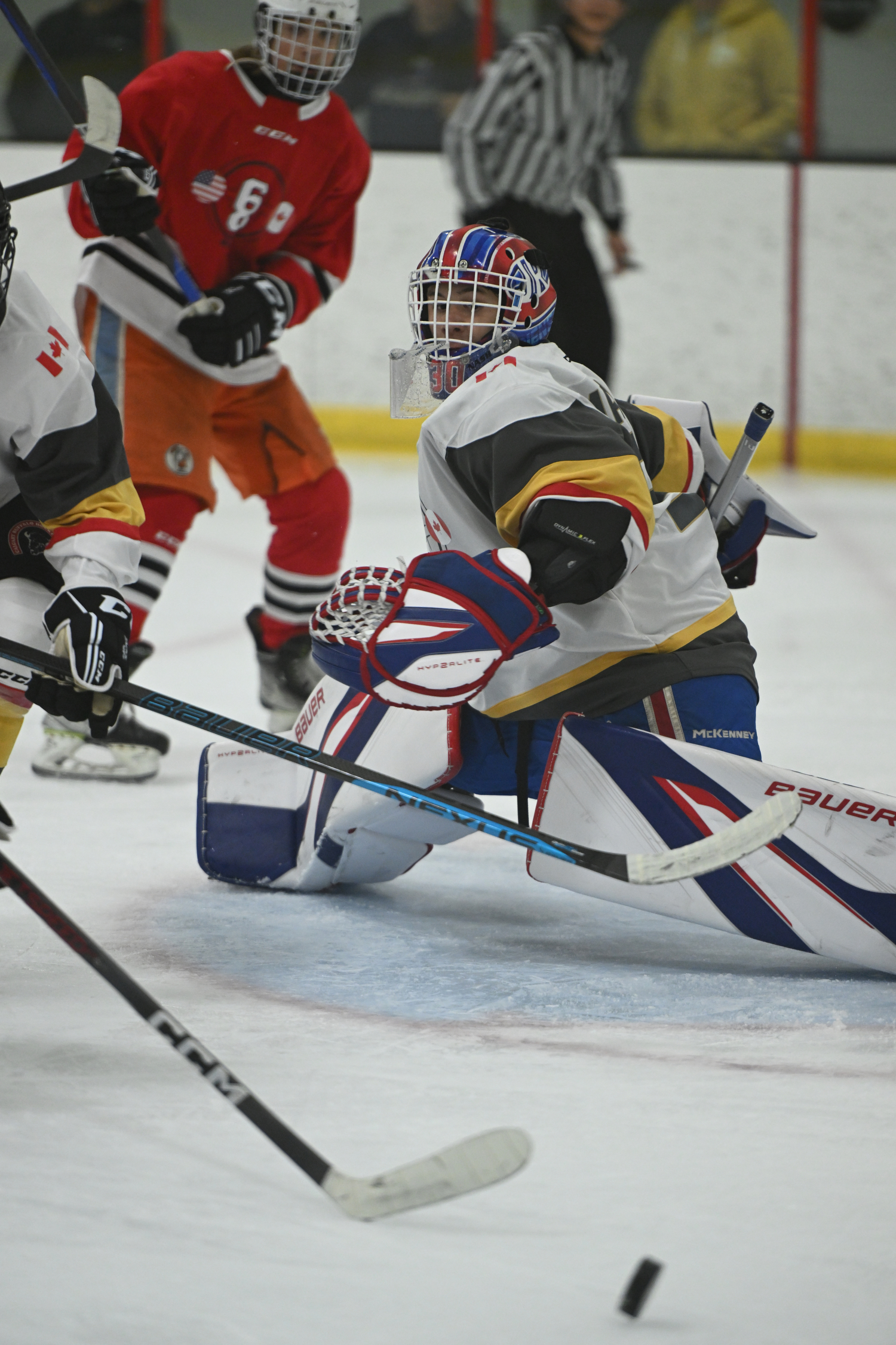 The culmination of the weekend saw the players donning their newly acquired CCM 68 jerseys, gloves and sticks for a series of exhilarating games. The friendly yet fiercely competitive atmosphere resonated throughout the venue, as players represented either the American or Canadian teams. Eight boys and eight girls teams competed against their counterparts from the opposing country, each team engaging in three games over the course of the weekend. Below are all results of every match.